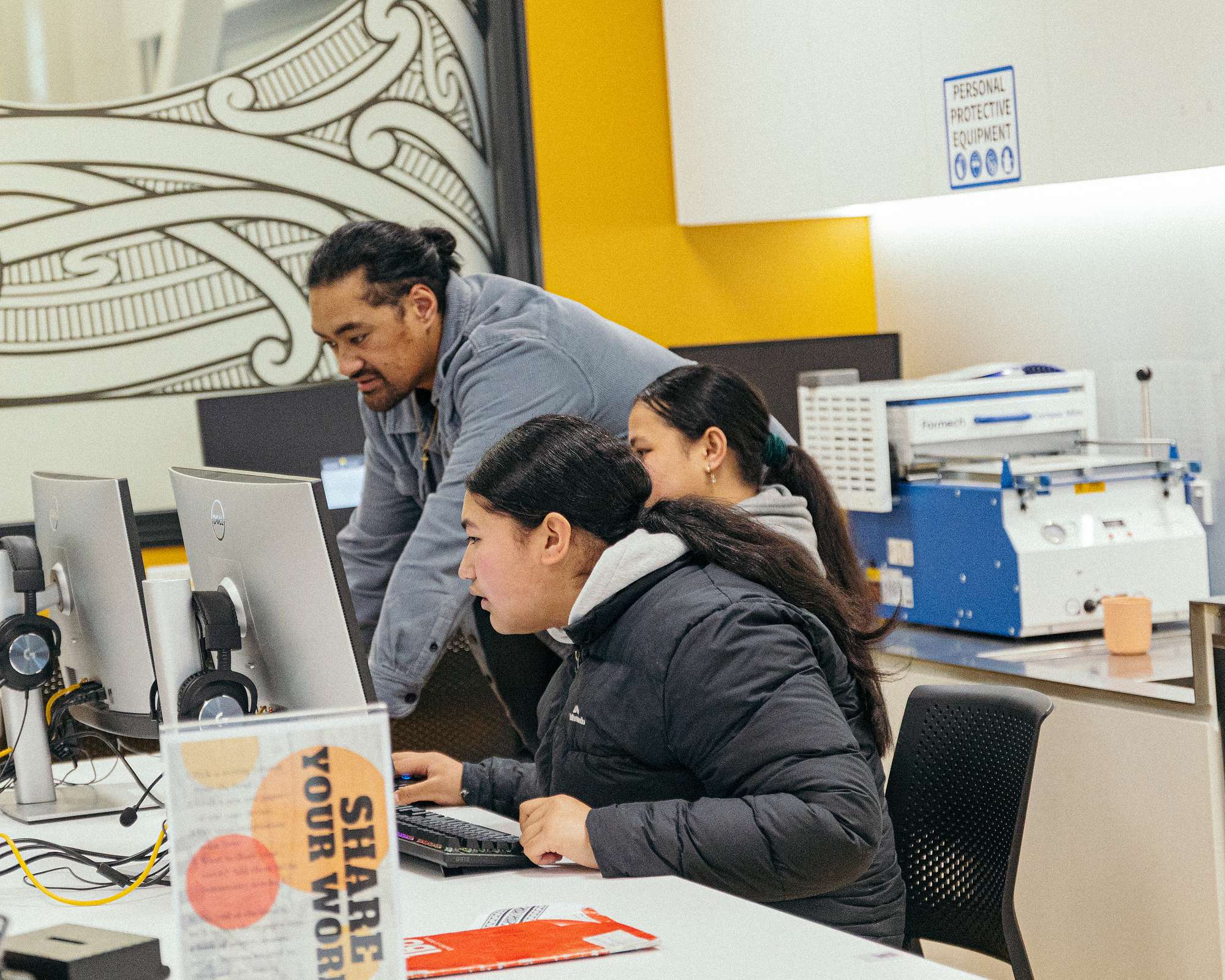 This past month, our Year 10 Gagana Sāmoa students had the opportunity to collaborate alongside the Christchurch city library maker space team to create and design all the parts of a traditional Sāmoan Fale. The process started by our students learning about the different types of Sāmoan Fale and what type of traditional resources are used to create each of the parts. Then, students incorporated learning on Såmoan Tatau patterns and created drawings based on the Sāmoan values and important measina (treasure) that shows their identity. From here, students learnt from technology and software experts Uai, Robbie and Danny on how to digitally form their design, ready to be laser etched on the panels that go around their Fale. This Cross curricular activity helped show students about the use of Software and new technology that they may have not had the opportunity to use and how they can bring a slice of home into their learning that weaves culture, language and identity.